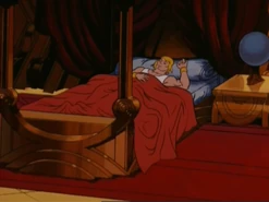 This chamber in the Royal Palace was Prince Adam's personal sleeping quarters. Although his pet Cringer was sometimes expected to sleep in the hall outside, when requesting to come inside, Adam would usually allow Cringer to join him. The bedroom featured a secret compartment behind a sliding wall which housed the Sword of Power.