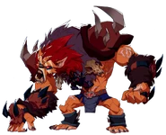 Unlike his pervious incarnations, he resembles more of a classical werewolf than a sasquatch and wears armor adorned with animal skulls.