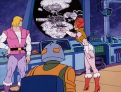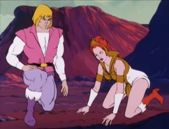 At the palace, Orko also felt sleep deprived, but in his case it was due to his exemplory hearing picking up explosions being set off in the Crimson Valley. Teela, Adam and Duncan speculate that these explosions could possibly have broken the seal to the Chamber of Darkness, allowing Darkdream to extend his powers over Eternia again. Adam and Teela each jumped on a Sky-Sled to investigate. But Darkdream overtook Teela's mind while she was flying. Adam quickly landed his sled and transformed into He-Man so he could save her. By the time Teela woke up, he had turned back into Adam again, and Teela was surprised to hear that the prince helped her get down safely.