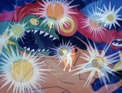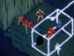 - When He-Man deflects Evil-Lyn's Freeze Ray, the shot cuts to Trap Jaw, but the background remains the same.