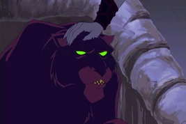 Panthor was a ferocious purple panther who was kept as a pet by Skeletor. He usually remained at the foot of Skeletor's throne at Snake Mountain, growling at the Evil Warriors who disturbed, and even taking swipes at the occasional Doomseeker if they got too close.