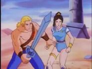 Princess Adora/She-Ra, He-Man's twin sister, has a companion Power Sword, called the Sword of Protection, which is identical except that it has a glowing jewel in the hilt. She transforms into She-Ra by saying, "For the honor of Grayskull... I am She-Ra!"