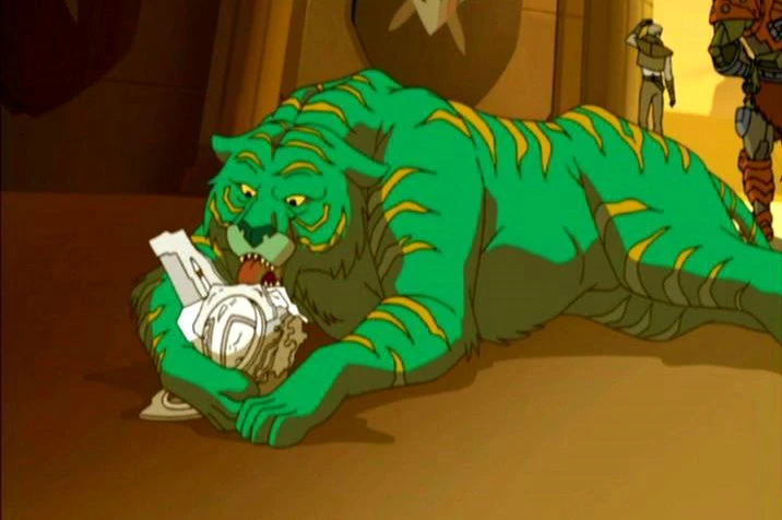Back at the castle Randor gets a package and letter telling him that Adam's been taken and Skeletor demands He-Man come and get him. Inside the package is Adam's sword. Man-At-Arms sends Orko and Cringer, with the sword, to Snake Mountain in hopes that Adam will be able to turn into He-man. Orko uses his magic to disguise Cringer as Panthor so he can get the sword in. Before Cringer can get the sword to Adam, he is spotted by a Doomseeker and chased away.