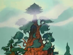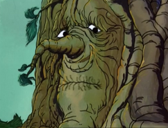In the Forgotten Forest, He-Man and Teela meet Tullamore, a Treeprechaun who protects the forest. When he learns what they plan to do to Skytree, he sics a pack of wolf-like creatures on them and tries to get the trees to crush them in their branches. Skytree, however, wants to know why He-Man and Teela intend to do it harm, so they tell it about Man-At-Arms' transformation by the Weird of Crystal and the bargain they made with Granamyr. Skytree recalls that an old Man-At-Arms saved the Forgotten Forest from the Witches of Fire, for which the ancient tree is still in his debt. It says that it has stood for ages, but it will continue to exist as long as a tree grows anywhere in Eternia, and agrees to sacrifice itself to save Man-At-Arms. Tullamore protests, and cries when Skytree stands by its decision. He-Man and Teela decide not to chop the tree down, saying that Man-At-Arms would have done the same thing, then call out Granamyr's name to return to him as Tullamore jumps for joy.