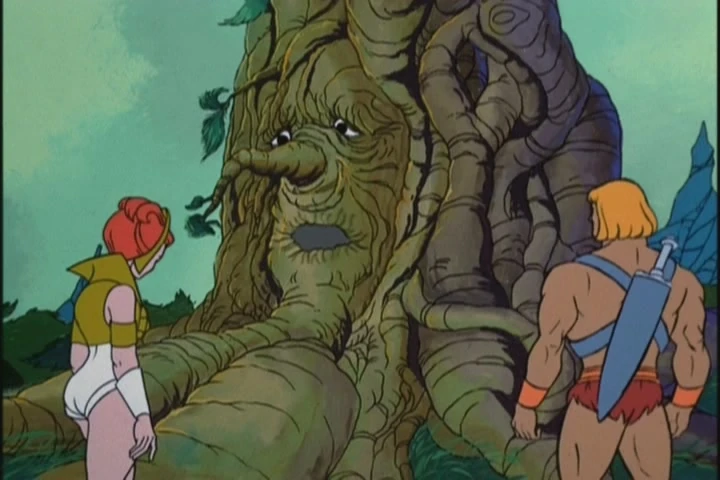 Teela: "Today He-Man had to decide whether or not to chop down a tree. Now, the trees around you probably don't speak the way Skytree did. Or if they do, we haven't learned to hear them... yet. But trees are living things. And when you respect a tree, you show that you care about all life. Life is a wonderful, precious gift. Learn to enjoy and respect it and you'll be a happier, better person for it. Bye for now."