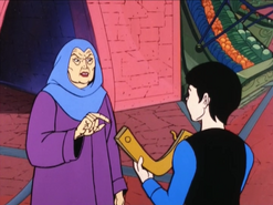 - Evil-Lyn uses the same old lady disguise she previously adopted in The Curse of the Spellstone, which was also used by Jarvan in A Friend in Need. A slightly altered version appears as the good witch in the She-Ra: Princess of Power episode Brigis and then as a disguise used by Catra in Portrait of Doom.