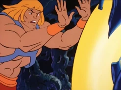 He-Man responded to the Sorceress' call for help by running into Grayskull and using his strength to push back the globe's growth. His strengh managed to do what her magic could nog achieve: to make it shrink back to it's original size. He then asked the Sorceress to levitate him and the globe to a window, where he subsequently gave the glove a mighty kick which sent it hurtling into outer space.