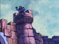 - When the Sorceress shows the building of Skeletor's fortress in the past by way of the Window of Time, there is a Snake Clan member (in orange) standing on top of the tower and a Ape Clan member (in blue) on the Battlement. The Snake Clan member should not be there as only the Ape Clan is working for Skeletor.